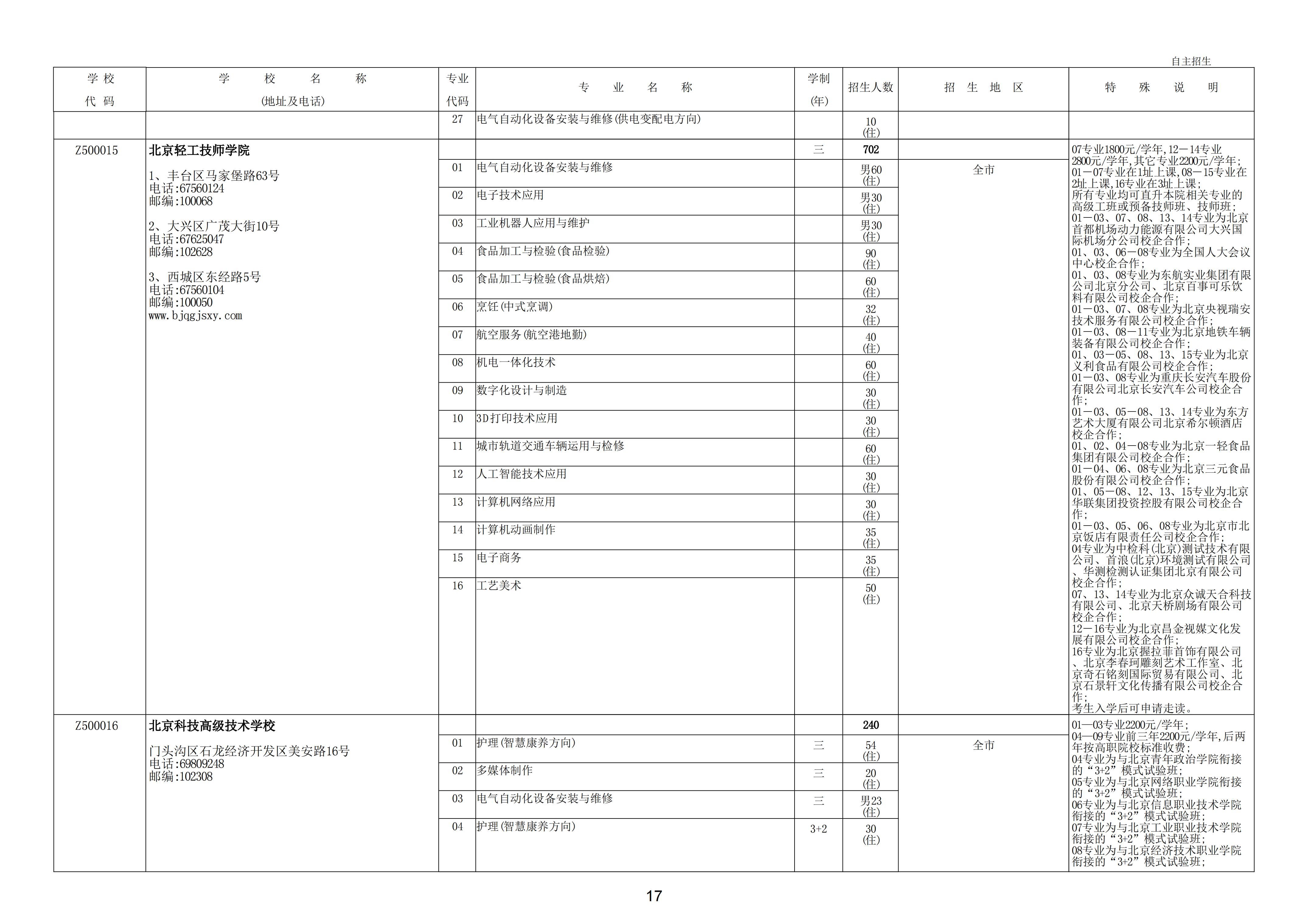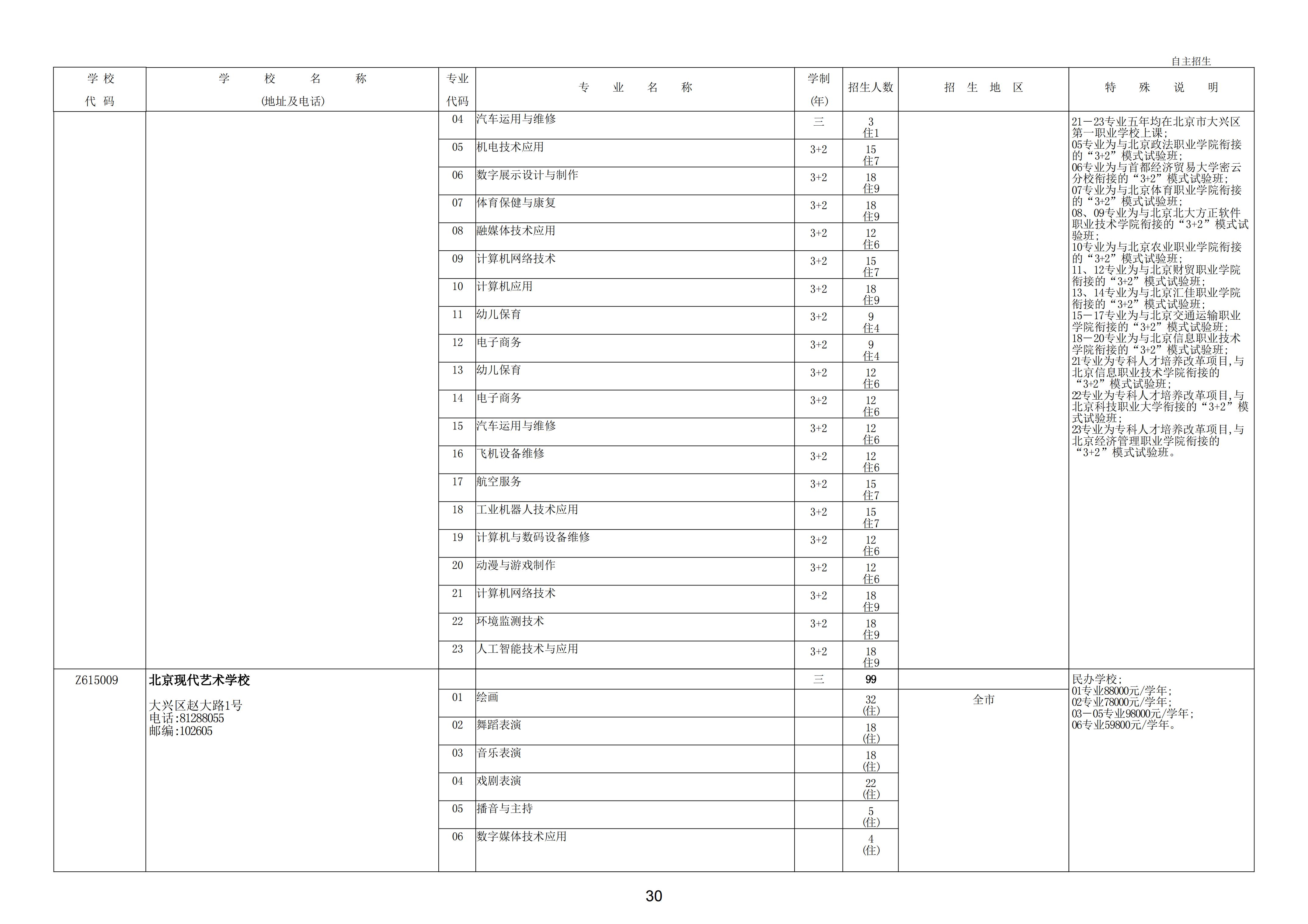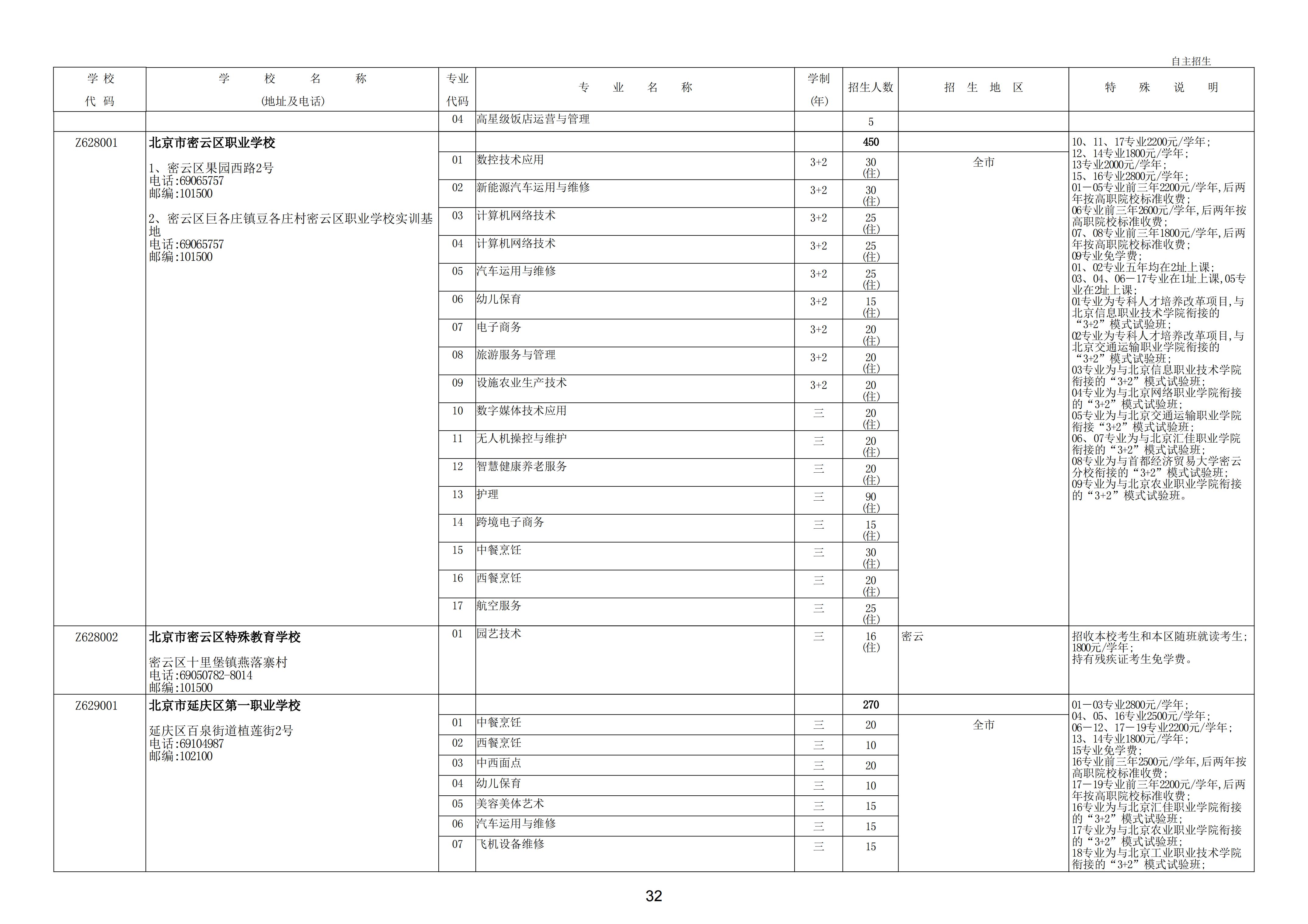 2025年北京市中等職業(yè)教育自主招生計(jì)劃