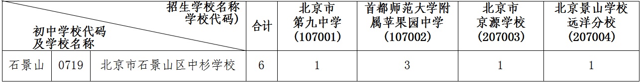 3.簡章第60頁,石景山區增加北京市石景山區中杉學校(學校代碼:0719)校額到校分配名額。如下表所示: